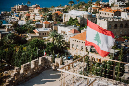 Lebanese flag seen at the Byblos fortress in Byblos, Lebanon.