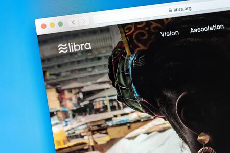 Cali, Colombia - July 2, 2019: Libra home page, Libra is Facebook digital cryptocurrency.
