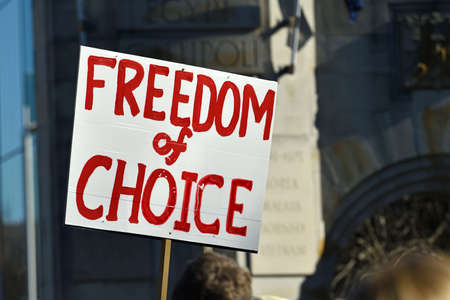 CHRISTCHURCH, NEW ZEALAND, JULY 24, 2021; Detail of a placard at a protest rally at the Bridge of Remembrance in Christchurch. Activists spoke against increasing government control over Covid vaccinations, farm taxes and civil liberties.