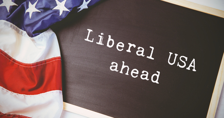 liberal america ahead against american flag on chalkboard