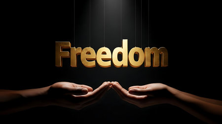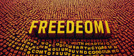 Freedom Concept with 3D Text in Vibrant Background