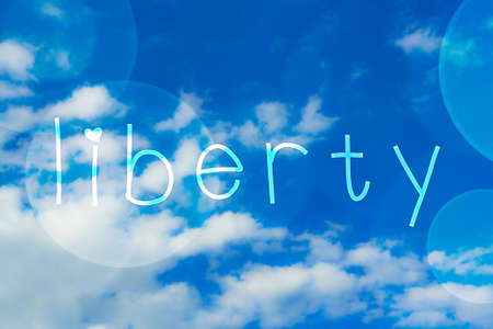 Letters from cement forming the word Liberty