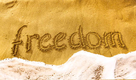 inscription FREEDOM on the yellow sand