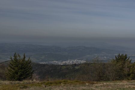Roznov pod Radhostem town in spring blue morning from Radhost hill
