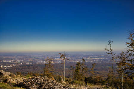 Landscape Panorama view from top of Brocken mountain peak in Harz mountains Wernigerode Saxony-Anhalt Germany