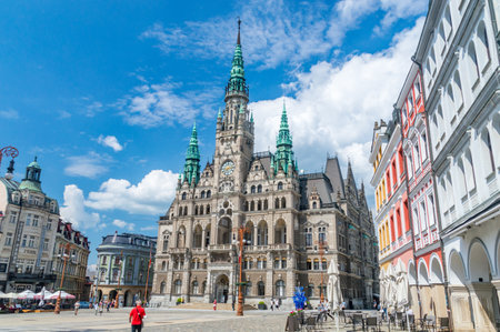 Liberec, Czech Republic - June 2, 2021: Town Hall on Edvard Benes Square in Liberec.