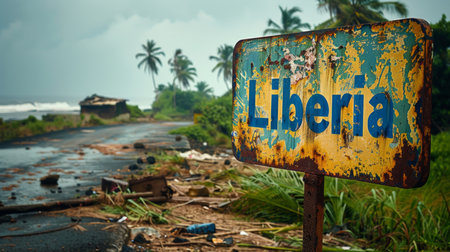 Old rusty sign with the inscription Liberia.