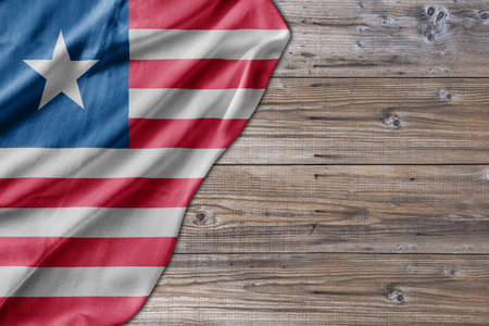 flag of Liberia or Liberian banner on wooden background