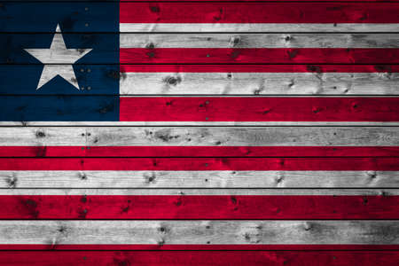 Wooden pattern old nature table board with Liberia flag