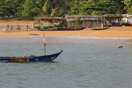 AXIM, GHANA - NOVEMBER 12 - Typical rural fishing village in Northern Ghana, with children playing on the beach, Ghana - November 12, 2012
