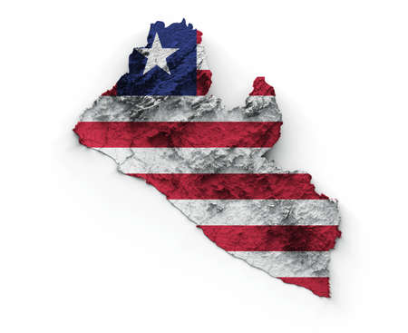 Liberia Map Liberia Flag Shaded relief Color Height map on white Background 3d illustration
