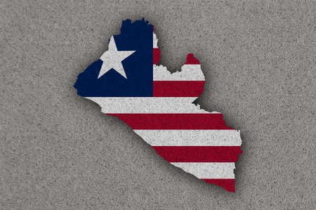 Map and flag of Liberia on weathered concrete