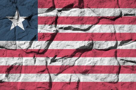 Liberia flag depicted in paint colors on old stone wall close up. Textured banner on rock wall background