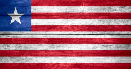 liberia Flag on the wood texture