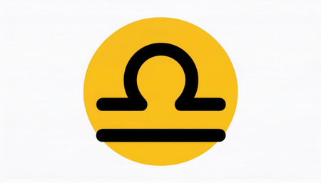 A striking depiction of the Zodiac sign Libra, featuring a bold black symbol on a bright yellow circle creating a vibrant contrast.