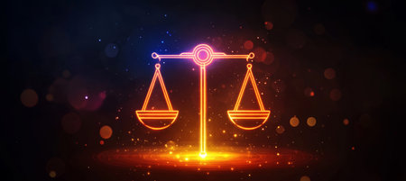 Neon Libra Scales Glowing Symbol of Balance, Justice and Harmony on a Dark Background