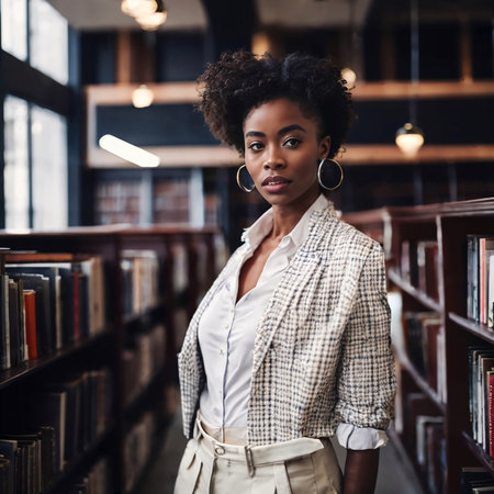 Confident African-American Librarian at a University, Demonstrating Leadership and Expertise