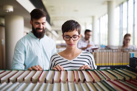 Group of college students at the library