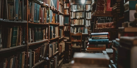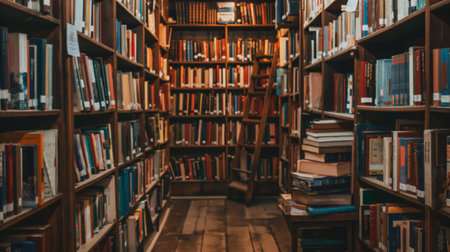 Cozy and inviting vintage bookstore interior with towering shelves filled with well loved paperback books in a rustic wooden setting A tranquil haven for book lovers and literary enthusiasts