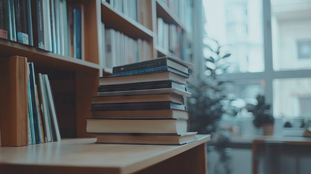 pile of book on the top table in library professional advertising photography