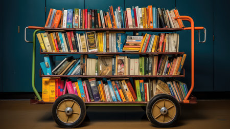 A stack of books with colorful spines on a shelf created with Generative AI