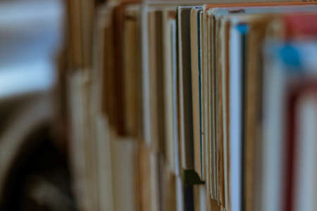 old books on bookshelf, library with big bookcase bookshelves, literature.