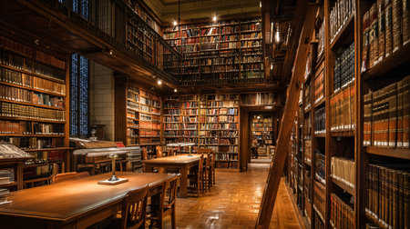 A serene library interior filled with rows of bookshelves, cozy seating areas, and soft lighting, providing a tranquil environment for study and reflection.
