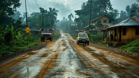 Kumasi, Ghana - April 06, 2022: Crowded African Road with Local Ghana People in Kumasi city