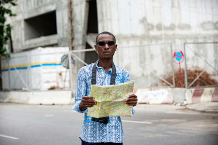 Unidentified Togolese man in yellow shirt and red bandana on his head. Togo people suffer of poverty due to the bad economy