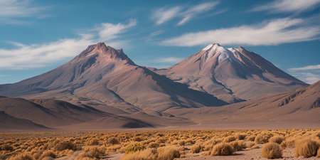 volcanoes Licancabur and Juriques, Atacama desert in Chile, view from San Pedro de Atacama