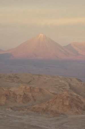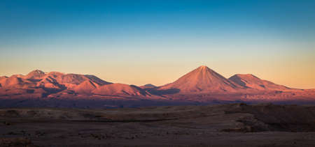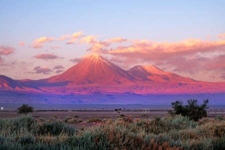 Volcanos Licancabur and Juriques at sunset - Atacama desert near San Pedro (chile)