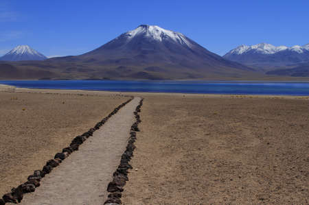Trail to Laguna Miscanti, salt lake in Atacama desert, volcanic landscape, Chile