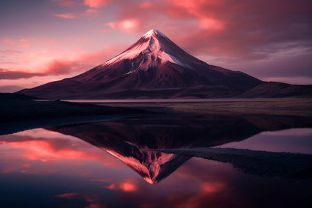 Licancabur volcano sunset over the lake, Atacama, Chile