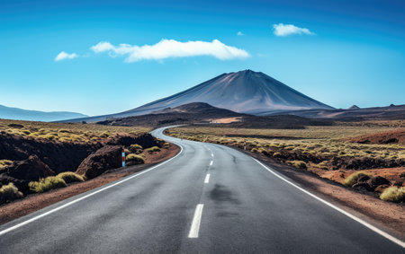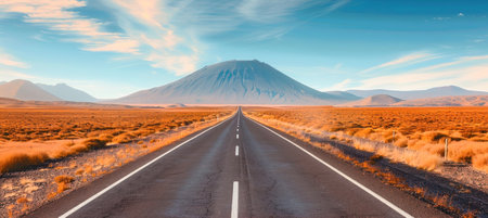 A beautiful road in a desert with a mountain view, ideal for exciting travel and adventures under the open sky
