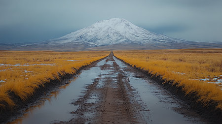 Road in the steppe with the Ararat mountain in the background