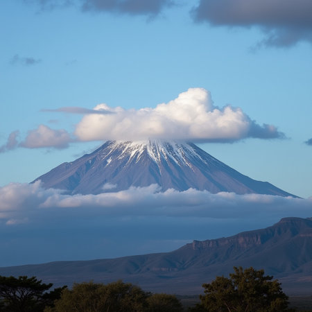 Majestic snow-capped mountain at sunset