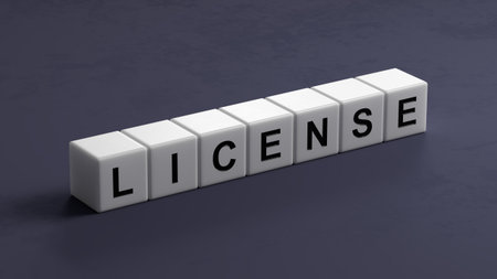 wooden cubes with the word license. close up of wooden cubes,Business Concept.3D rendering.