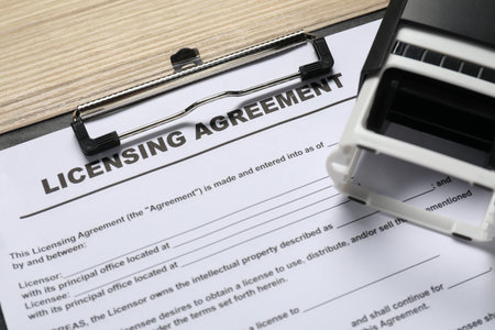 Licensing agreement document on white table, closeup