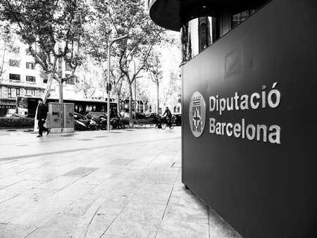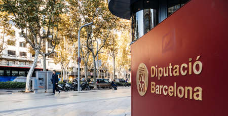 Barcelona, Spain - Nov 17 2017: Street scene with entrance of Barcelona Provincial Council Diputacio - the local body charged with the government and administration of the province