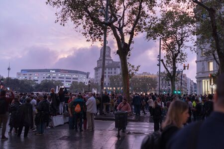 Catalan people taking over the Placa Catalunya in Barcelona protesting the Spain's Supreme Court's decision, October 2019