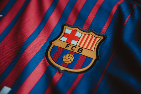 San Jose, Costa Rica - April 29, 2018. - Shield of the FC Barcelona Spanish football club in Jersey