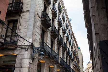 Building with black iron balconies at the Gothic Square in Barcelona, ??Spain