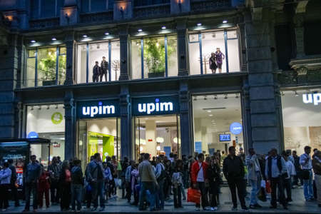 MILAN, ITALY - SEPT 14, 2008: People enter in the evening the Upim store specializing in the sale of clothing and cosmetics in Milan on Sept 14, 2008.