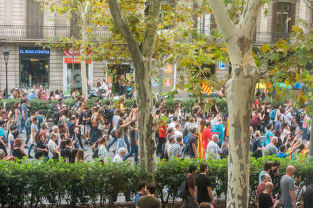 BARCELONA, SPAIN - OCTOBER 3, 2017: People demonstration for Catalonia independence in Barcelona city center