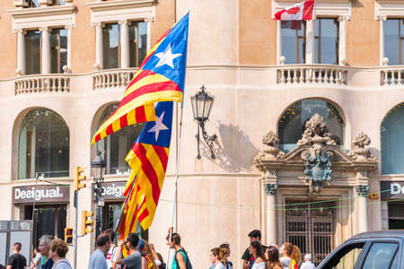 BARCELONA, SPAIN - OCTOBER 3, 2017: An estelada, the Catalan separatist flag, Barcelona. Close-up