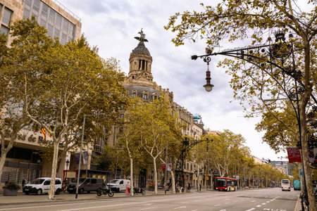 Barcelona, Spain - September 03, 2023: Picturesque avenue Paseo de Gracia in center of Barcelona in autumn in the Eixample district