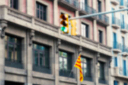 A beautiful building in Barcelona, Spain. The flag of Catalonia on the balcony.