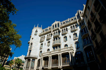 Facade of an apartment building in Modernismo style in Gracia, Barcelona, Spain, Europe