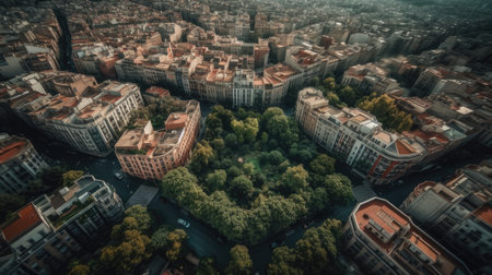 Aerial drone shot of Barcelona near Turo de la Rovira in morning sunrise