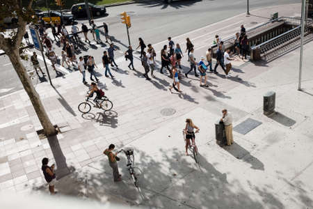 Barcelona, Spain - June 12, 2017 : Urban views - streets, people, tourists of the most beautiful city of the Mediterranean - Barcelona, capital of Catalonia, Spain.